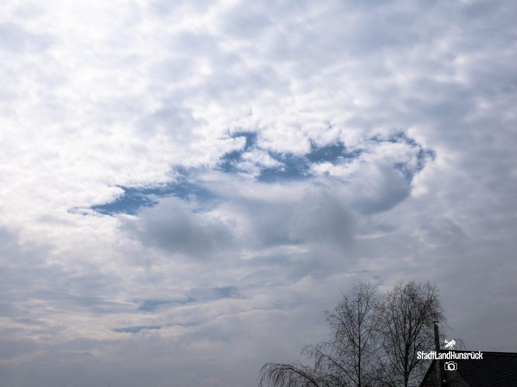 Eine Hole-Punch Cloud (auch Fallstreak Hole genannt) ist ein seltenes Wetterphänomen, bei dem sich ein großes, kreisförmiges oder ovales Loch in einer Wolkendecke bildet. Diese Löcher entstehen meist in mittelhohen Wolken, wie Altocumulus oder Cirrocumulus.