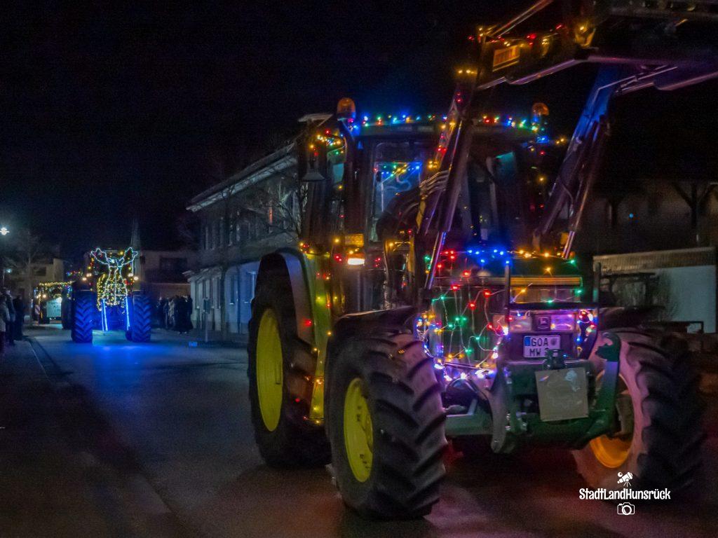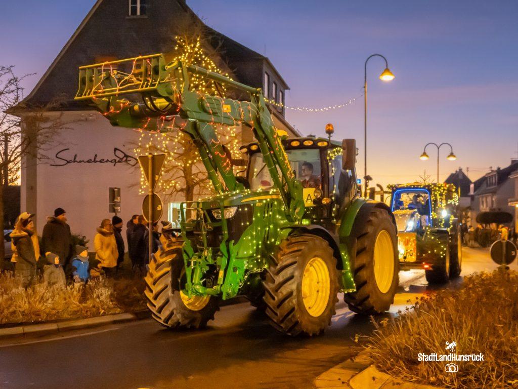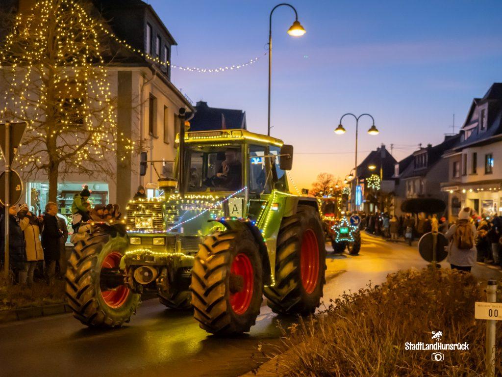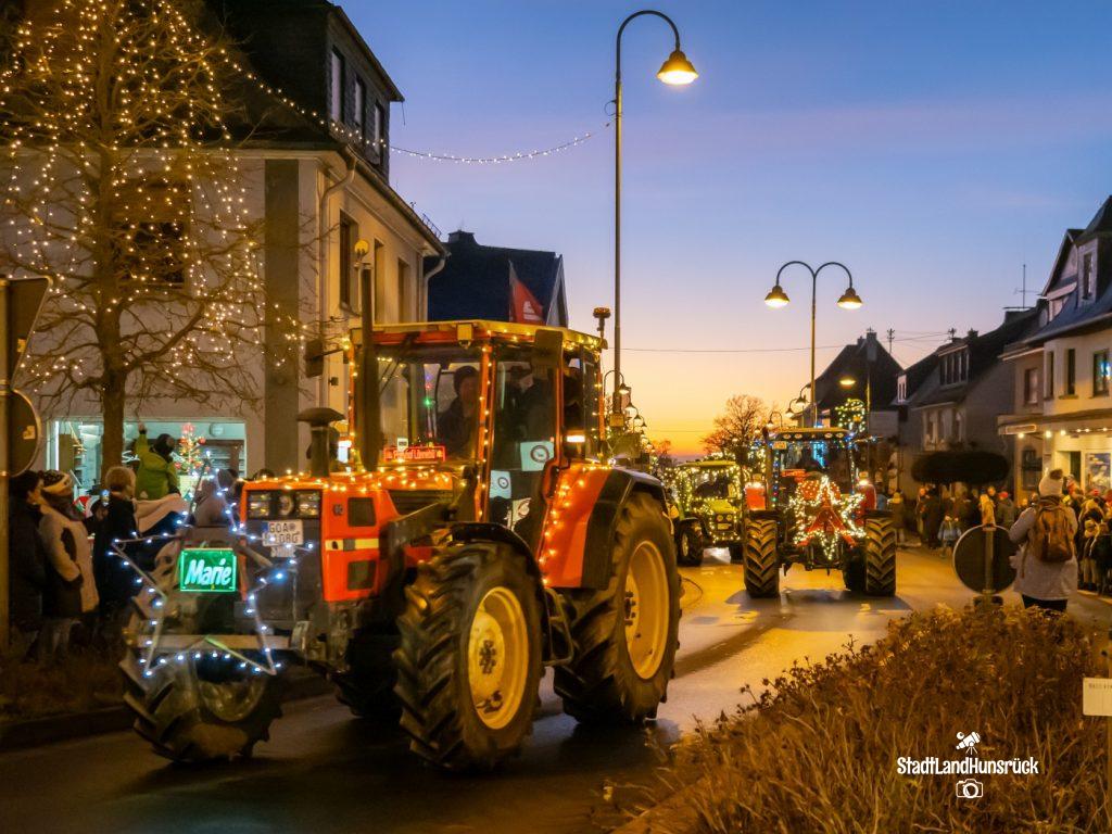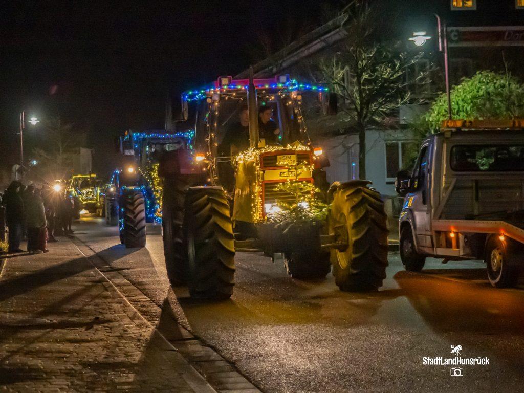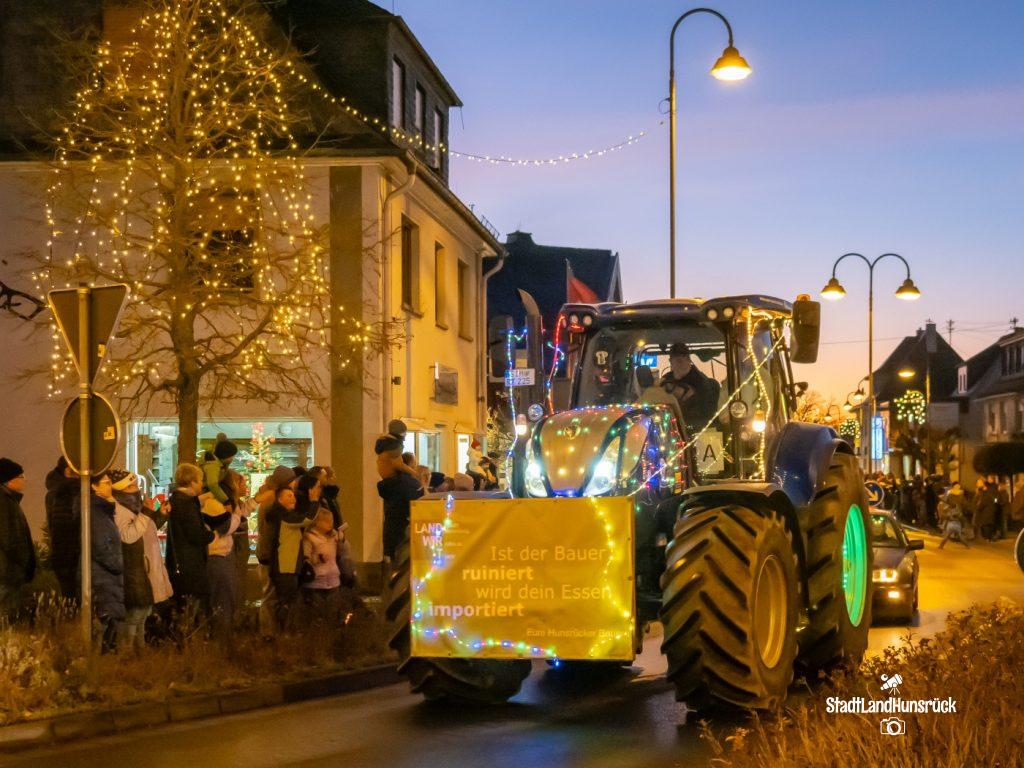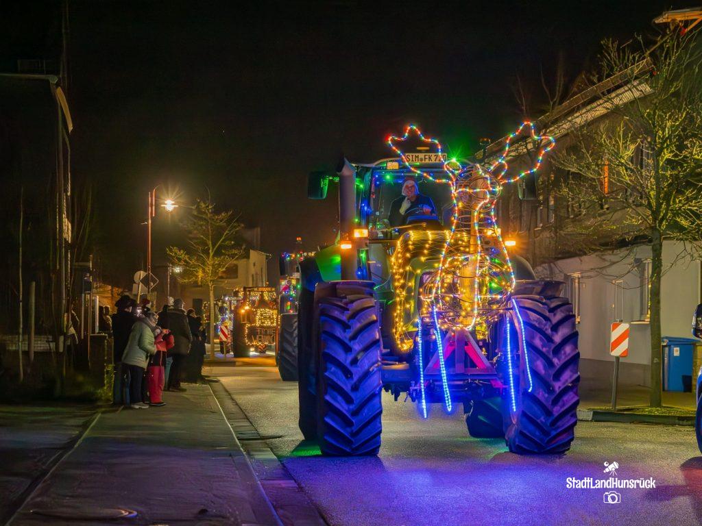 Besser als den CokaCola Truck sind die Weihnachts Trecker aus dem Hunsrück. Entstanden als Weihnachtsmarktersatz in der Coronazeit, erfreut sich die 3. Lichterfahrt der Hunsrücker Landwirte großer Beliebtheit. Ca. 120 Fahrzeuge nahmen am 16.12. und 17.12. teil. Aus aktuellem Anlass waren nicht nur rein weihnachtliche Motive an den Traktoren zu sehen: