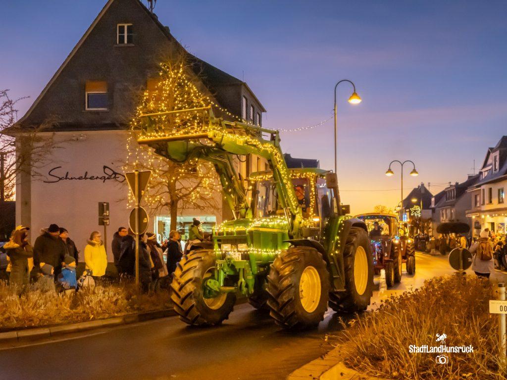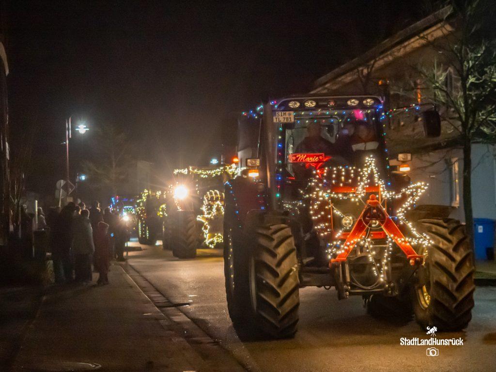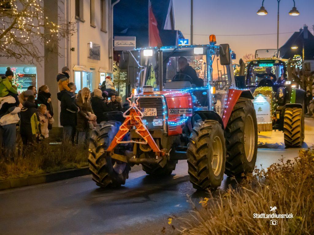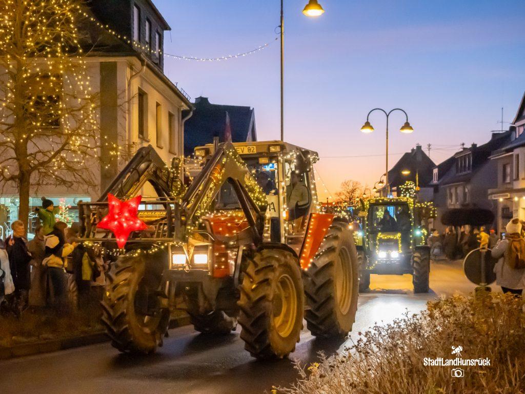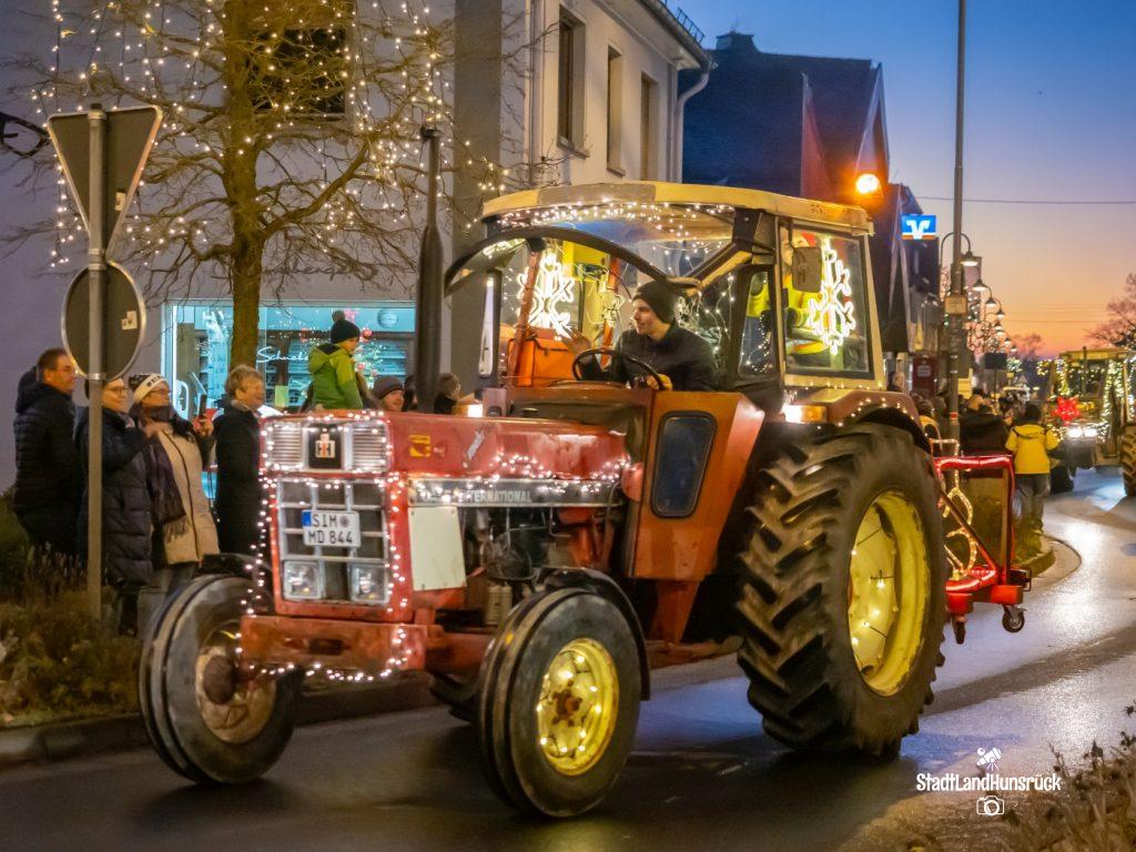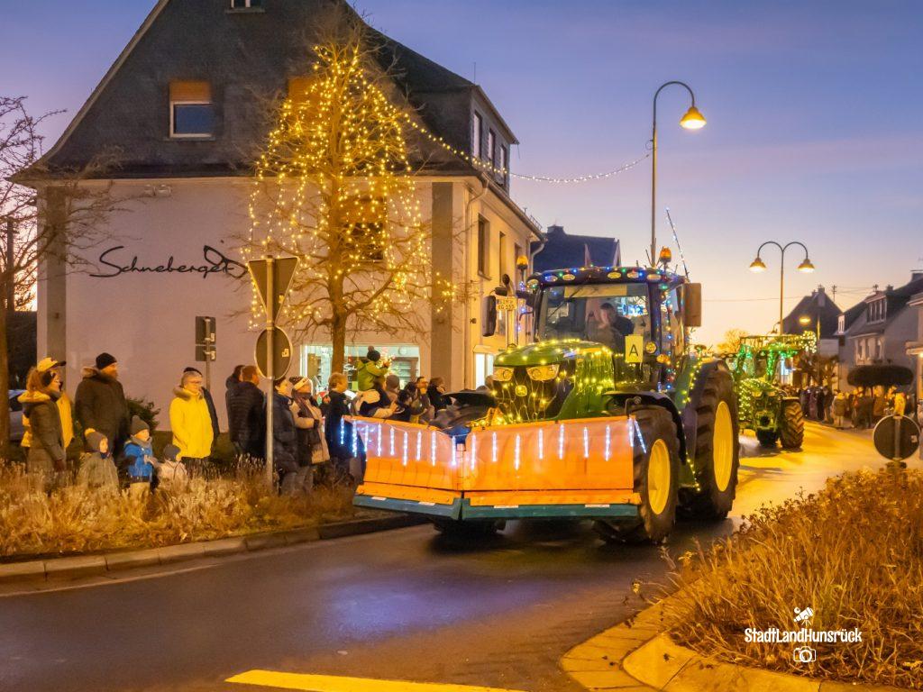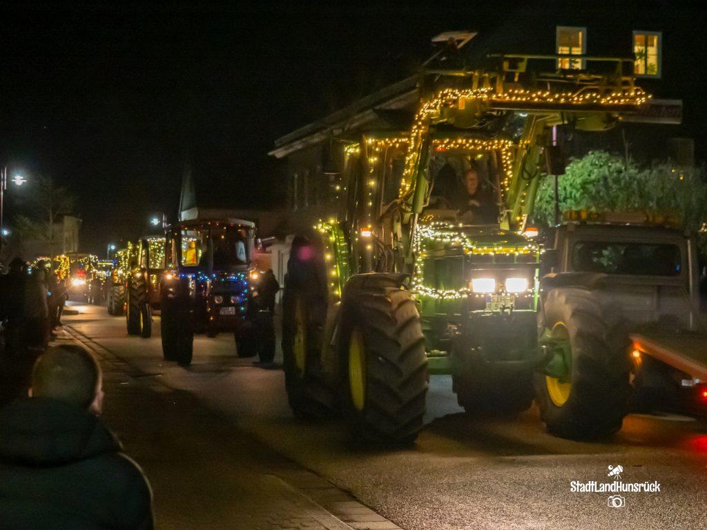 Besser als den CokaCola Truck sind die Weihnachts Trecker aus dem Hunsrück. Entstanden als Weihnachtsmarktersatz in der Coronazeit, erfreut sich die 3. Lichterfahrt der Hunsrücker Landwirte großer Beliebtheit. Ca. 120 Fahrzeuge nahmen am 16.12. und 17.12. teil. Aus aktuellem Anlass waren nicht nur rein weihnachtliche Motive an den Traktoren zu sehen: