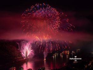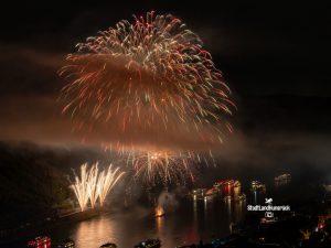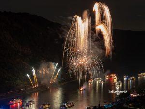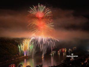 „Rhein in Flammen“ in Oberwesel, eines der beeindruckendsten Feuerwerksspektakel am Rhein, findet am 14. September 2024 statt. Die Veranstaltung bietet ein atemberaubendes Feuerwerk, das synchron zur Musik gezündet wird. Dabei erstrahlt die Stadt Oberwesel festlich, und der Loreleyfelsen leuchtet in bengalischem Rot. Rund 50 geschmückte Schiffe fahren von St. Goar nach Oberwesel und bieten den Gästen spektakuläre Ausblicke auf das Feuerwerk vom Wasser aus.