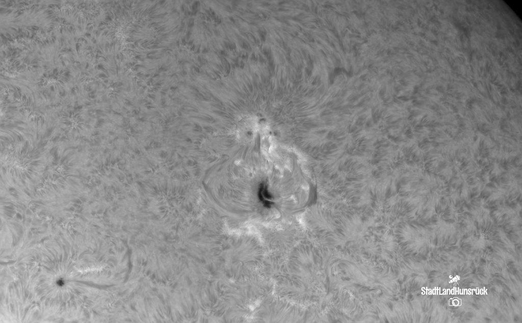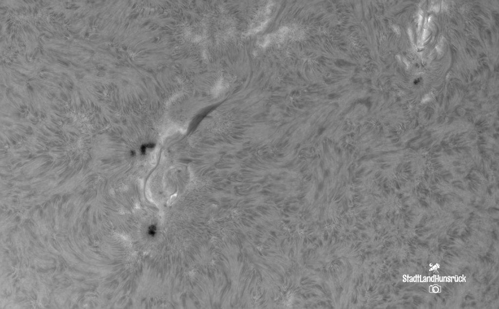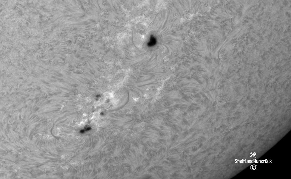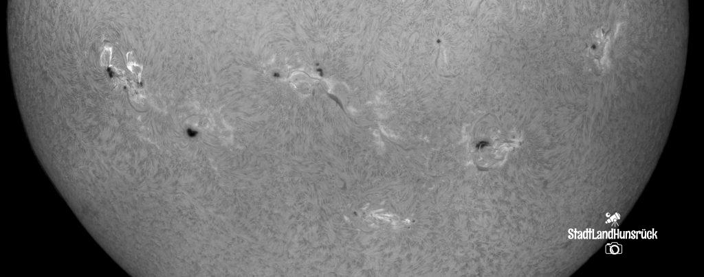 Da eine Nachführoptimierung noch unterwegs war testete ich die Funktion „Feature tracking“ in Sharpcap. Dafür war es zu windig, so dass bei erfolgreicher Kalibrierung Sturm simuliert wurde. Dann halt nicht. Aber es gibt doch den automatischen Mosaikersteller in Sharpcap. Man muss nur den Rand der Sonne anfahren und los geht’s…theoretisch. Praktisch kam ich an die geforderten 48 Pixelabweichung nicht ran. Das Beste war 56. Könnte ja sein, dass ich die Sonne exakt ausrichten muss. Damit tue ich mich immer schwer. Ich bin sofort örtlich nicht mehr orientiert, wenn ich aufs Bild schaue. Da hilft nur ein Bild im Internetz als Vorlage zu suchen. Hat jedenfalls auch nicht funktioniert. Die manuelle Ausrichtung hat auch nicht funktioniert, denn Sharpcap war der Meinung, dass die Sonne zu weit weg vom geschätzten Ort der Montierung war. Ach was. Potzblitz. Ich wäre auch glücklich, wenn die Monti beim Anfahren sofort die Sonne in der Mitte hätte. Macht sie aber ums Verrecken nicht. Nachdem ich die Wasserwaage angelegt habe und neu eingenordet wurde, erscheint ein Objekt immerhin am Rande des Suchers aber weit weg von der Bildmitte. Das ist eindeutig Arbeitsverweigerung!